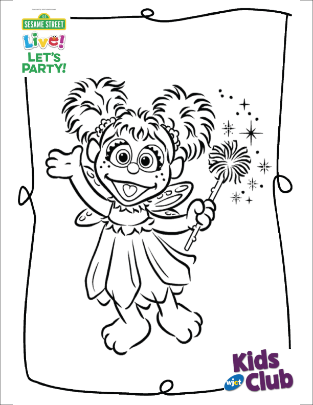 - Download one of the two available coloring sheets (Abby or Elmo).