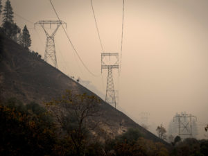 California utility PG&E Corp. said Monday that it plans to file for bankruptcy over what it estimates could be $30 billion in potential liability costs from recent wildfires. Here, transmission towers in a valley near Paradise, Calif., as the Camp Fire burns in November 2018.