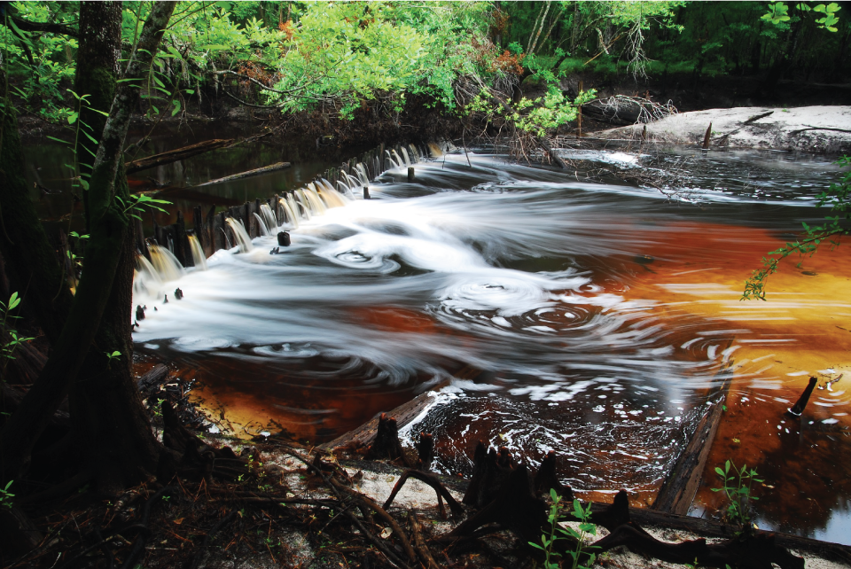 Piece Description: The ZIRKLE DAM, built in 1918 across the Little Satilla River in Southeast Georgia, flows today.
