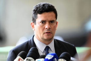 Judge Sérgio Moro, appointed by Bolsonaro as justice minister, speaks to journalists at the transitional government’s headquarters in Brasilia in December