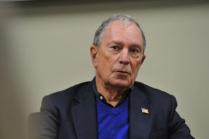 Former New York Mayor Michael Bloomberg meets with local business owners and activists after touring an electric company in Cedar Rapids, Iowa, in December.