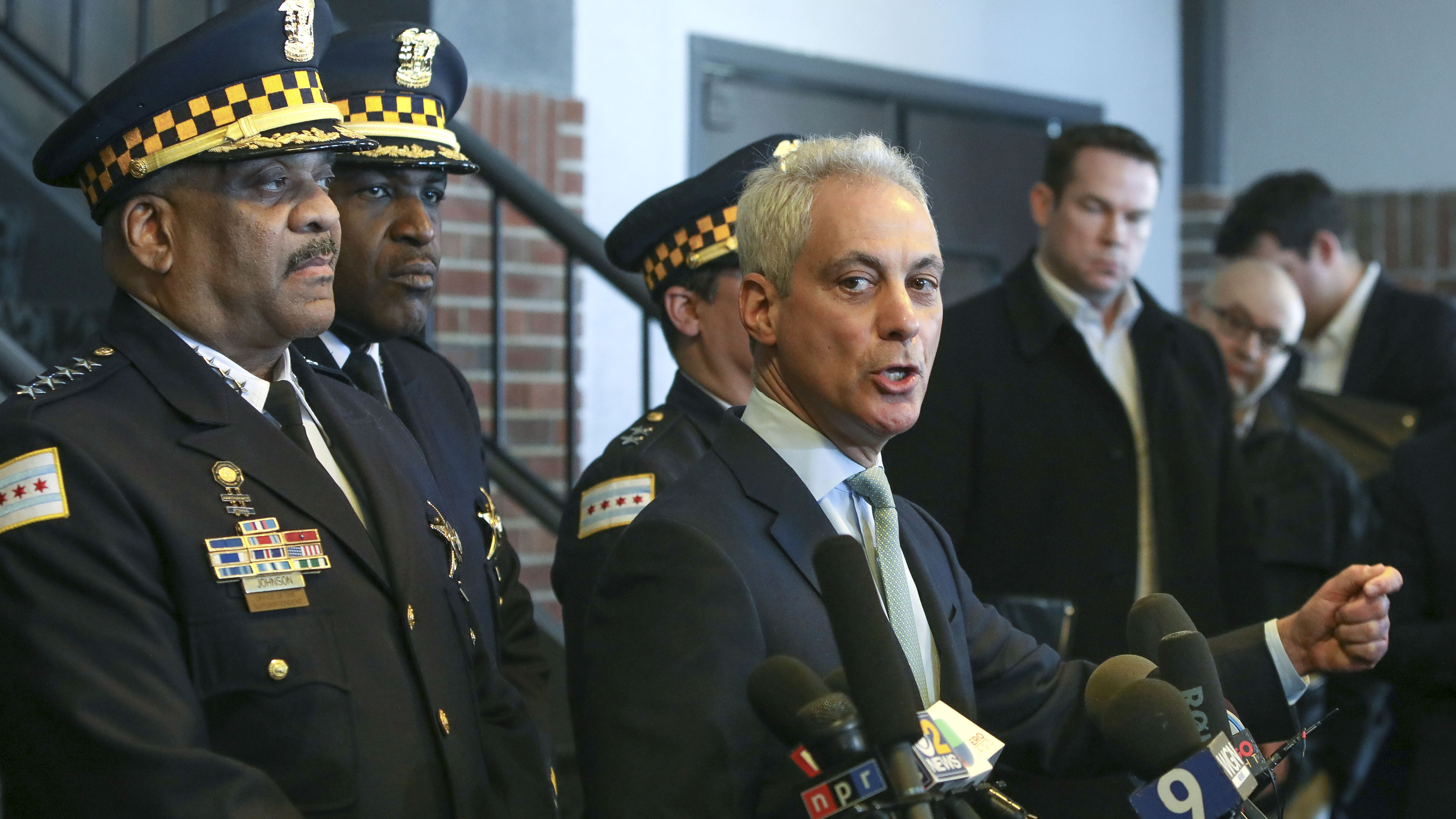 Chicago Mayor Rahm Emanuel, right, and Chicago Police Superintendent Eddie Johnson held a news conference on March 26 to protest the dropping of charges against Smollett.