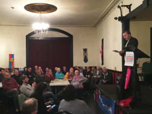 Will Grover, a local councillor in Lincolnshire, tells pro-Brexit voters in the village of Horncastle that they should be proud of voting to leave the European Union. Grover says Brexiteers can feel stigmatized for their views, and he hoped the gathering might provide a safe space for some Brexit voters.