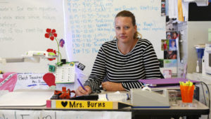 Heather Burns at Martin Elementary School in South San Francisco, where she now teaches third grade. Burns was diagnosed with breast cancer in 2016 and had to pay for her own substitute while on sick leave.