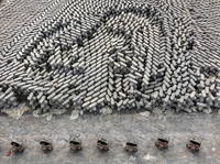 A tetrapod factory in Dongying, China. These concrete blocks are dropped into the ocean to create a barrier that protects low-lying oil refineries from rising sea levels. According to a recent scientific review, human beings have now produced enough concrete to cover the entire globe in a 2mm- thick layer