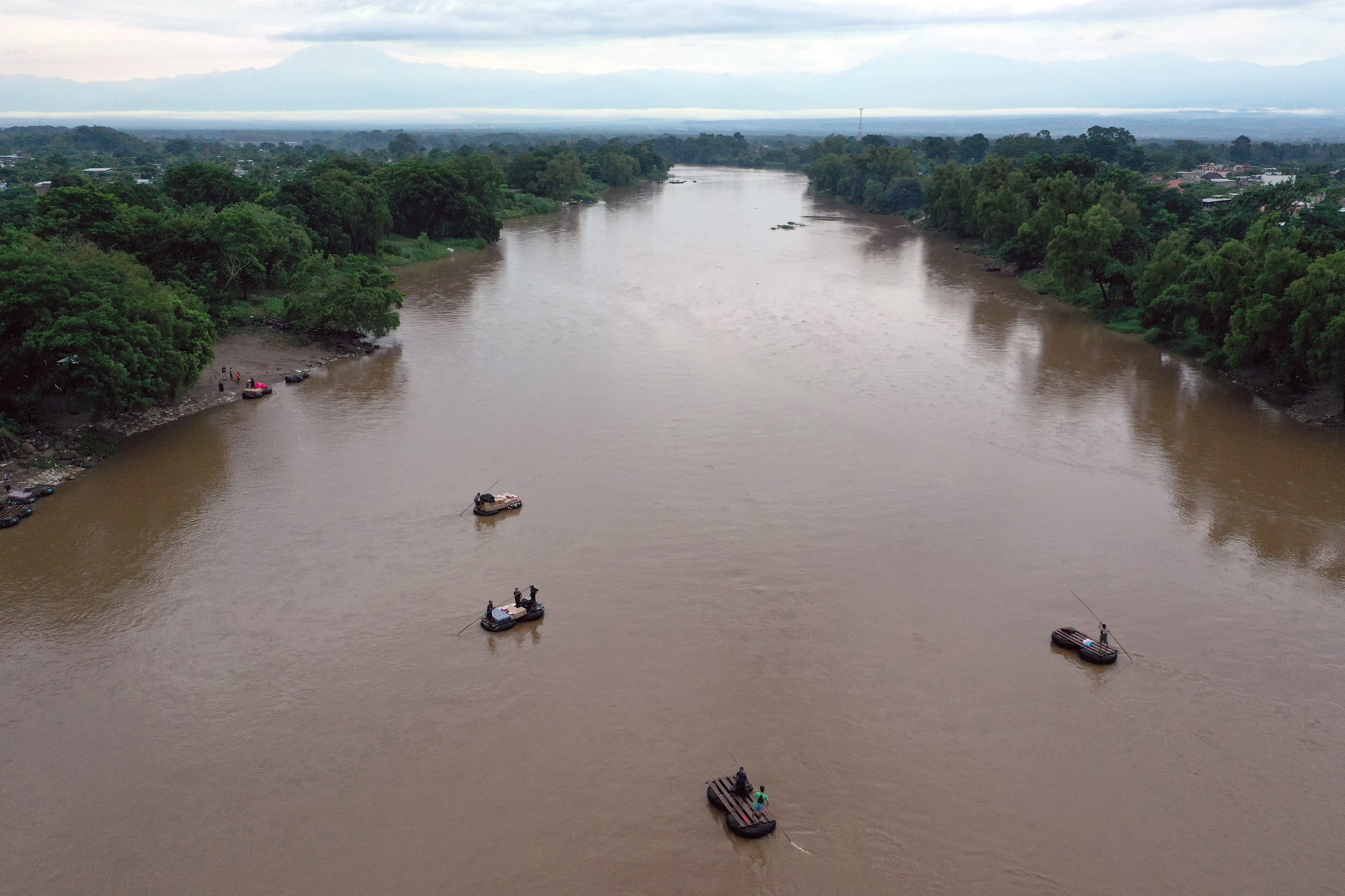 Guatemalan migrants use makeshift rafts to illegally cross the Suchiate river from Tecun Uman in Guatemala to Ciudad Hidalgo in Chiapas State, Mexico, on Monday. In an effort to pressure Guatemala to reduce migration, the Trump administration is planning punitive measures against the country.
